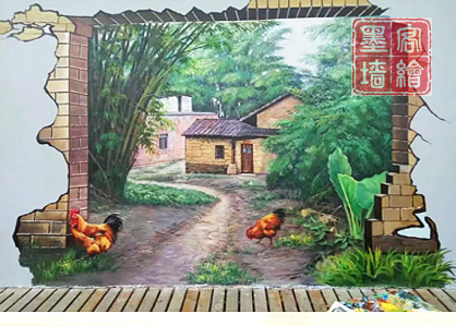 溫州市墨客墻繪藝術有限公司主要從事有個性有創(chuàng)意的家居裝飾墻繪、幼兒園卡通彩繪、KTV酒吧主題墻繪、3D立體墻繪、習哥彭姐文化大革命的城鄉(xiāng)文化宣傳墻繪等,當然還有我們獨歩武林的高墻墻繪藝術!畫高墻有時一個頭像就有兩米,不僅僅是大了型不好把握,一般習慣在陸地作戰(zhàn)的繪畫者往往上去后會讓你唱起一首歌:“三月里的小雨,淅瀝瀝瀝......瀝瀝……淅瀝瀝瀝下個不?!本褪谴魃夏虿粷?,他們也會在上面演示帕金森。我們施工時下面觀看的人如少女初戀般心跳,欣賞的人似紂王品酒觀妲己跳舞一樣陶醉。連村中惡犬也為我們搖尾吶喊:“……墨客墻繪……神勇無畏!
